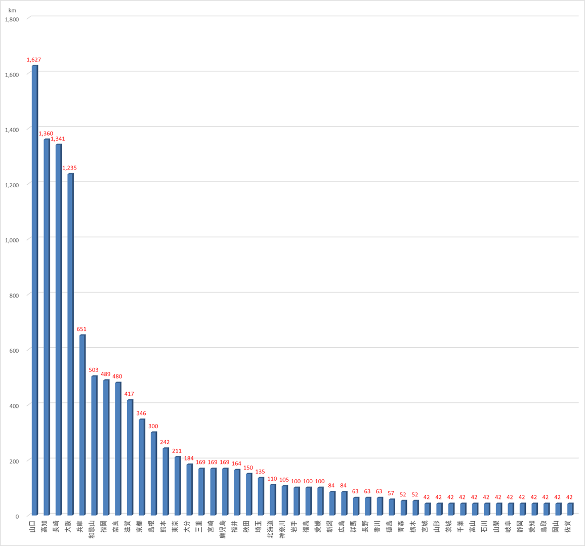 順位ジュンイ 県名ケンメイ km