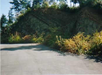 右の写真はハイランドパーク駐車場に、不思議な断層があったので、カメラのシャッターを押した。