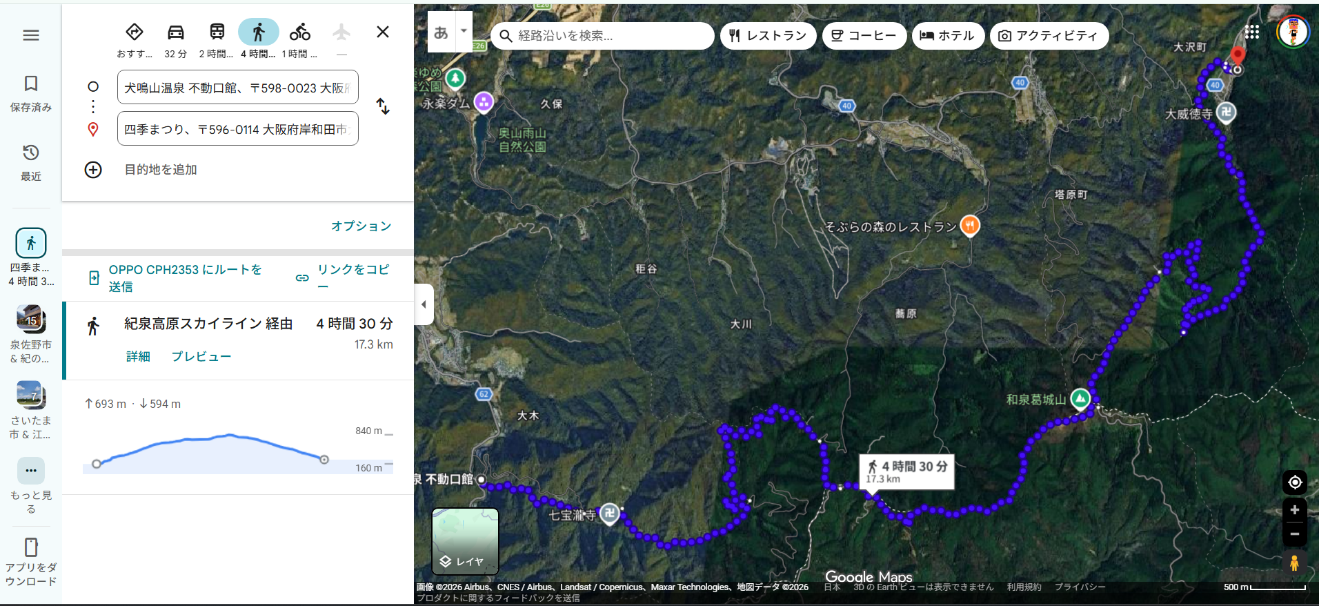 犬鳴温泉~粉河ハイランドパーク~泉葛城山頂~牛滝温泉